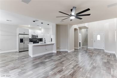Beautifully updated two-story home with modern finishes and low-maintenance landscaping! This spacious home features an open-concept floor plan with plenty of natural light. The kitchen boasts sleek white cabinetry, quartz countertops, subway tile backsplash, stainless steel appliances, and pendant lighting over a large island. Upstairs, enjoy generously sized bedrooms with ceiling fans, including a bright primary suite with a bay window and ensuite bath. The backyard offers a covered patio, turf area, and plenty of space for entertaining. A two-car garage with built-in storage completes the home.