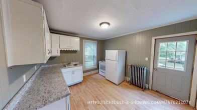 Remodeled kitchen and bathroom with resurfaced hardwood floors throughout most of the unit.