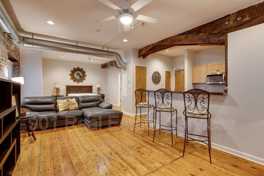Furnished studio at the desirable Barton Flats downtown! This gorgeous unit features exposed brick walls and original beams, adding to the historic character. This condo features beautiful plank hardwood flooring, concrete counter tops, stainless steel appliances & high ceilings. Bath features huge garden style jetted tub. (Bed shown in photos is not included in furnishings.)