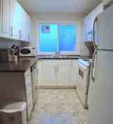The kitchen is fully equipped with dishes, cutlery and cookware. The kitchen has seating for 4.