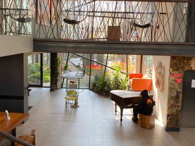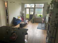 There is a doorman in the building every night after 9pm and a package room for large deliveries. There is beautiful garden area downstairs, gym and washing machines on the ground level. On the roof there's a jungle gym, swings and bikes as well as another garden. If you love dogs you're in luck we've got a cute 6 month old chow chow and there's a dog park on the roof. There's also a movie room, a game room, and an art room.