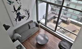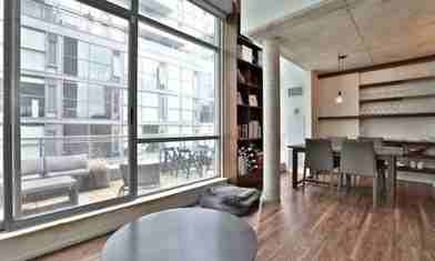Rarely available large (845 sq.ft) 2 storey loft with huge terrace and tons of character, locker and parking in the boutique historic Charlotte Lofts building (only 60 units in total), on a quiet little street right next to King & Spadina. Newly renovated kitchen, brand new brushed steel appliances (4-french-door fridge, stove with AirFry, dishwasher). New hardwood flooring. Large walk-in closet. Brand new modern vessel sinks/vanities in both washrooms. Soaring 17ft ceilings. Floor to ceiling windows with custom high quality roller blinds. Built in shelving in the kitchen/dining area. Extra storage closets in the powder room and hallway. Perfect terrace for entertaining. Quiet living in the heart of the entertainment/fashion district. Rooftop party room/terrace, gym room.