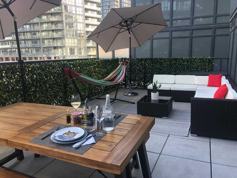 Beautifully Furnished Or Unfurnished Sun-Filled Corner Suite. Large Furnished Terrace With Extra Storage Incl! Wifi Incl! Blackout Roller Blinds Incl! Free Charging Station! Amazing Building Amenities: Rooftop Terrace, Bbqs, Pool, Gym, Guest Suites. Ttc At Door Step, Billy Bishop Airport, Restaurants, Shops, Cafes, Parks, Groceries, Waterfront.