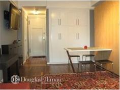 Reduced Fee. Beautifully renovated, furnished studio in Tudor City. Move right in to this bright, immaculate home, with views of the Koch/Queensboro Bridge and the UN. There is a custom Murphy bed, dining table, galley kitchen, custom-made seating, dishes, glassware, utensils, linens, and flat-screen t.v. UTILITIES ARE INCLUDED. This apartment has been tastefully and ingeniously designed to maximize space and provide a serene environment. Ample closet space, and a spotless bath. Welcome home. Minimum 1-year lease, (no short-term). Sorry, no dogs.
