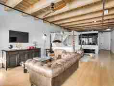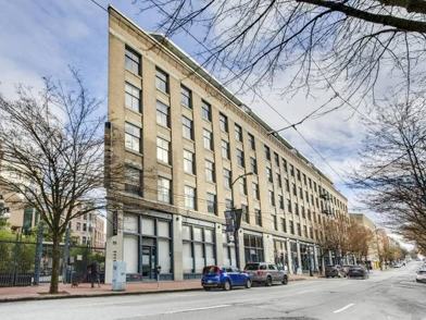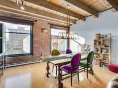 True NYC loft in Vancouver's transforming GASTOWN. This huge warehouse conversion was completed in 2006, and was able to keep the existing high ceilings and exposed wood beams and bick. The LOFT itself has had some really cool updates with suspended translucent black glass panels for privacy and room separation, new kitchen cabinets , sliding hung glass doors with high end hardware to define the hobby room and designer touched to make this unit ONE OF A KIND. The floors are quality bamboo engineered laminate. The bathroom is very unique with a separate Zen toilet, mosaic tiled shower hall, and exposed tub, all surrounded and framed with the translucent black glass panels. This place is unique to say the least.