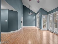 Welcome to this cozy and inviting three-bedroom home, perfectly situated in the highly desirable Escoba Bay Community. With tree-lined streets, a community pool, an equestrian center, and a private boat launch, this neighborhood offers both tranquility and amenities for an active lifestyle. Step inside to an open and airy great room with stunning floor-to-ceiling windows, flooding the space with natural light and offering serene views of the wooded backyard. A fireplace adds warmth and charm, making this the perfect gathering space. The spacious back deck, just off the great room, provides a peaceful retreat to enjoy your private, tree-lined backyard. The split floorplan places the primary suite on the main level, featuring a walk-in closet, a garden tub, a glassed-in shower, and a dual vanity. Upstairs, you'll find two generously sized bedrooms and a full bath, offering privacy and comfort. The kitchen and breakfast nook are bathed in sunlight, thanks to oversized windows that bring the beauty of the outdoors in. The kitchen is well-appointed with stainless steel appliances and ample counter space for cooking and entertaining. Throughout the home, you'll find carpeted bedrooms for comfort, while laminate and tile flooring provide durability and style in the main living areas. Don't miss your chance to live in this sought-after community with equestrian and waterfront amenities. Schedule your showing today and make this charming home yours!