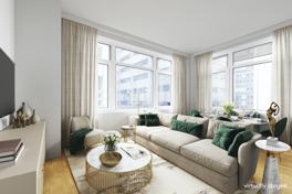 A sprawling 1651SF corner home located in the iconic lower Manhattan Financial District - FiDi. 59 John Lofts is one of the most desirable boutique luxury loft condominiums in area. This is a large three bedroom loft home with two marble and porcelain over-sized bathrooms plus a powder room. The main bedroom is large with an en-suite spa like bathroom and a custom outfitted walk in closet. Two additional bedrooms each generously sized, also contain customized closets in each. An open gourmet kitchen offers a large granite island and granite countertops, Sapelli wood and glass front finished soft touch cabinetry, and top of the line stainless steel appliances. The kitchen opens into a spacious corner living area with oversized windows with southeast exposure. Hardwood floors,11 foot ceilings, abundant custom outfitted closets and a washer and dryer complete this spacious home. The building amenities include a 24-hour doorman, live-in superintendent, an incredible furnished roof-top terrace with a twin grill, a fitness room, media lounge, courtyard, storage unit and bike room. Pets are welcomed. 59 John Lofts is conveniently located in the heart of the FiDi, next to multiple subway lines, Path train, water ferries, new Fulton transit center, Westfield Shopping Center, Eataly, South Street Seaport and Hudson River Park