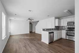 The main living area flows effortlessly into the kitchen, creating the ideal setup for everyday living or weekend get-togethers. The kitchen is equipped with an electric range, microwave, and dishwasher, and features ample cabinetry to handle all your cooking tools, pantry items, and more. Whether you're making a quick breakfast or preparing a full meal, you'll find the space both practical and enjoyable to use.