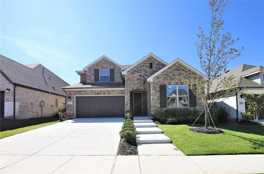 Home in Mustang Lakes with pools, tennis courts, gym and amenity center activities, 5 bedrooms, 4 baths, gas countertop range, built in microwave, disposer, dishwasher, granite countertops in kitchen, study with French doors, fireplace, covered entry, covered patio area, media room, mini blinds, decorator lighting, wood fenced back yard, HOA maintains, landscaping, and pest control