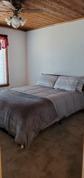Oversized square hand hewn logs that are meticulously chinked. Open wood beam and tongue and groove ceilings throughout. There is plenty of room, parking, large yard and plenty of stuff to do. The main floor has an open floor plan with a living room, large table to gather around for dinner and a large kitchen with a bar area and bar stools for more seating. There is also 2 bedrooms and a bathroom, equipped with a shower and soaking tub, and the laundry room on the main level. One bedroom has a queen size bed and the other bedroom is a large open room with a queen bunkbed. Huge room for entertainment on second level including a rec area with a pool table and foosball table. There is a door that opens up to a nice deck that wraps around the front of the house. Giant master bedroom with a king bed and bunkbed (twin over full) and includes a large walk-in closet. The master bathroom is connected to this bedroom and has a separate shower and oversized soaking tub. Master has two sliding glass entrances to outside patios areas. One is accessed only from the master bedroom. There are 2 more bedrooms on the upper level of the house, one with a queen size bed and the other with a bunkbed (twin over full) and another bathroom with a standing shower.