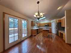 *The kitchen appliances include a stainless steel stove, refrigerator (side by side with ice and water in the door), dishwasher, and microwave.