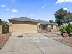 Step into a lifestyle of comfort and leisure with this beautifully updated 3 bedroom, 2 bathroom ranch-style home, offering 1,526 sq. ft. of thoughtfully designed living space. From the moment you arrive, the meticulously maintained xeriscaped front yard and grand entrance with a spacious two-car garage set a tone of modern elegance. The interior welcomes you with a stunning open-concept floor plan, featuring high vaulted ceilings and a sophisticated blend of rich wood-look laminate and durable tile flooring. The expansive living area, centered around a decorative fireplace and bathed in natural light from large windows with custom shutters, provides the perfect backdrop for both quiet evenings and lively gatherings. The chef-inspired kitchen is a true highlight, boasting elegant granite countertops, crisp white cabinetry, and a full suite of stainless steel appliances. The functional layout includes a breakfast bar that overlooks the living room, ensuring the host is always part of the action. Retreat to the primary suite, a sprawling sanctuary that features private sliding door access to the backyard and an en-suite bathroom designed for relaxation. This spa-like retreat includes a double vanity, a modern glass-enclosed shower, and a deep soaking tub situated under a large privacy window. The true showstopper of this property is the expansive backyard, a private paradise designed for the ultimate Arizona lifestyle. Spend your summers lounging by the sparkling private pool or hosting weekend BBQs under the massive covered patio. With a fully block-fenced perimeter for maximum privacy and low-maintenance landscaping, this outdoor space is as practical as it is beautiful.