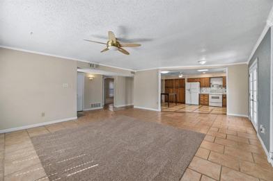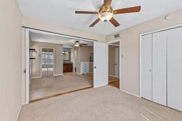 Open and flowing floorplan in this 3 bedroom 2 bath home with oversized backyard and covered patio. Find spacious living room with carpet and tile floors, mirrored accent wall, plus french doors leading to outside. Kitchen is equipped with electric cooktop and oven, refrigerator, and lots of cabinet storage. Enjoy oversized master bedroom with additional room for living, office or play space. Master bath with built in vanity, framed mirror, updated light fixtures and shower tub combo. Additional bedrooms share full bath. Huge backyard with lots of open green space, shade trees and wood fence. Conveniently located to Central Park, schools, dining and major roadways.