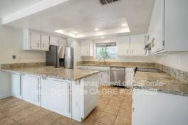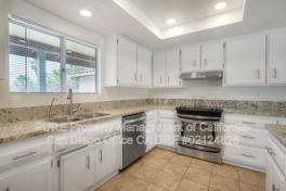 **$500 Move In Incentive** Move-in ready 4-bedroom, 2-bathroom single-story home (1,584 sq. ft.) featuring an open freshly remodeled floor plan with white kitchen, stone countertops, stainless appliances, and large spacious backyard with sparkling pool. Private owner suite with upgraded bathroom, plus second upgraded bath with laundry access. Backyard includes citrus trees and privacy from the street. Finished 2-car garage and solar electricity included.