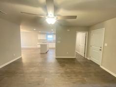 Step inside to LVP flooring and an open-concept design that seamlessly connects the living, kitchen, and dining areas—perfect for everyday living and entertaining. The kitchen features recessed lighting, a breakfast bar/island, and comes fully equipped with a stove, refrigerator, dishwasher, and built-in microwave. A sliding glass door off the dining area provides easy access to the backyard and fills the space with natural light.