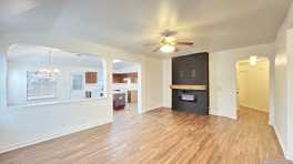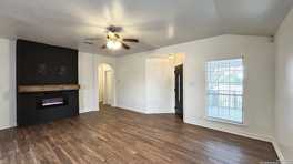 3 Bed, 2 Bath 1623 sq ft Single Story Home in a Gated Community. No Carpets! All wood-look tile floors throughout. Large Living Room with mock fireplace. Kitchen with breakfast bar, Stove, Dishwasher. Walk-in Pantry. Ceiling Fans throughout. Primary bedroom with Walk-in Closet. Primary Bath with a separate Shower/Garden Tub, dual sinks. Fenced yard with a covered patio. 2 car garage. Community Pool. Close to Randolph, Fort Sam, 410, IH-10.