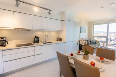 Spectacular views of the city from shared roof terrace, rooftop garden, well-designed, thoughtfully curated common spaces. The building has been designed for multiple functions with a public plaza to enhance your integration to the surrounding eclectic neighborhoods. Staying here you’ll have access to a fireside lounge, shared gardens, a children’s play area, and two kitchens with barbecues. With views overlooking Vancouver cityscapes to the North Shore and beyond. An indoor entertainment room for those winter months and a fitness room with state-of-the-art equipment.