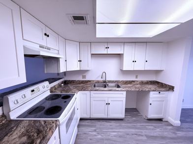 Newly renovated townhome with covered assigned parking spot with fresh paint and upgraded vinyl flooring with a private patio a must see!