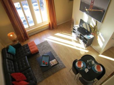 Located where the Mission, Hayes Valley and Castro districts collide, this fully furnished condo is perfect for shopping, eating out, nightlife, and an easy commute to downtown. Situated on the 3rd floor facing west, sunshine pours into this unit.Access to the 101/80 freeway is one block away. BART is 4 blocks away, while Muni is one block away on Market Street. Many grocery stores and parks are within walking distance. The floor plan is unique, offering three distinct living/sleeping/work spaces with one full bathroom. The kitchen, living room, bedroom and bathroom are located on the main floor, then upstairs you'll find a loft office area. The kitchen is fully equipped with all the appliances and utensils you'll need to prepare a gourmet meal!A washer and dryer are located in the unit. Hardwood floors on the main floor, with carpet in the upstairs loft. All housewares and linens provided.One car parking included.No pets permitted.All utilities included, as well as wi-fi.3 month lease. 1219