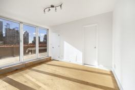This two bedroom, two bath Penthouse duplex features light, space and a spectacular private outdoor deck. The open chef's kitchen flows into the living room and features stainless steel appliances, a wine refrigerator, a mosaic-tiled backsplash, granite countertops and a breakfast bar. The first floor includes a large bedroom, full bathroom and washer/dryer. Upstairs is a second full bathroom and master suite, which opens up to the enormous 23' by 13' private terrace featuring city and water views. This pet friendly, elevator building is located in the heart of Hells Kitchen including fabulous restaurants and nightlife, Broadway theaters and access to transportation.