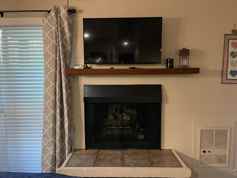 •new, larger, wall mounted tv with Amazon fire stick for streaming