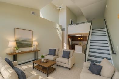 Modern Top-Floor Penthouse with Loft in Eastside Commons where style meets convenience in the heart of Stamford! This pet-friendly penthouse offers an impressive layout featuring 2 spacious bedrooms, 2 full bathrooms, and a versatile finished loft-perfect for a home office, gym, or additional living space. The home also includes in-unit laundry and a dedicated storage room for added convenience. Step inside to find soaring 9-foot ceilings, dramatic vaulted living room ceilings, and oversized picture windows that flood the home with natural light. Enjoy your morning coffee or unwind on your private balcony, ideal for relaxing or entertaining. The open-concept kitchen is a chef's dream, showcasing granite countertops, refinished cabinetry, stainless steel appliances, and an expansive island breakfast bar-perfect for hosting friends and family. Both bedrooms offer excellent storage space, with the primary suite featuring a walk-in closet, private balcony access, and an en suite bathroom. Recent updates include new carpeting, freshly painted, a refinished staircase, and a high-efficiency gas furnace for year-round comfort. You'll enjoy resort-style amenities such as a fitness center, meeting room, beautifully landscaped courtyard with grilling areas. The unit includes one reserved covered garage space plus plenty of guest parking. Located just minutes from downtown Stamford, Metro-North/Amtrak, and I-95. Please schedule your private view. $100 off if signing a 2-year lease.