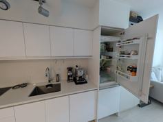 The enclosed balcony is in the bedroom, can be separated by a glass sliding door