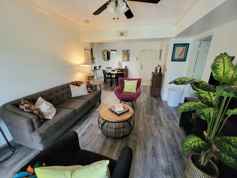 This 2 bedroom, 2 bath condo features a split bedroom floor plan with newer laminate and ceramic tile floors, updated kitchen with rich maple tone cabinets, granite countertops, stainless steel appliances, and farm sink. Living room/dining room combination with breakfast bar. Primary bedroom en suite with newer double sink vanity and generous walk-in closet. 2nd bedroom en suite with dual closet, updated bath has a tile walk in shower with glass sliding barn doors, newer vanity and linen closet. Added features are crowning moldings, newer HVAC, newer windows, 2 inch blinds, updated lighting, light neutral paint colors, and a full balcony with tree lined views for tranquil evenings. Building features a gated community with a resort style pool, fitness center, drive up mailbox, newer exterior paint and newer landscaping. Conveniently located in downtown, Dr. Phillips Performing Arts Center, Lake Eola, Church St, and so much more.