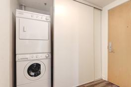 All Existing Elfs & Blinds; S/S Kitchen Appliances: Fridge, B/I Gas Cooktop, Range Hood, B/I Oven & New B/I Dishwasher; Stacked Washer & Dryer.