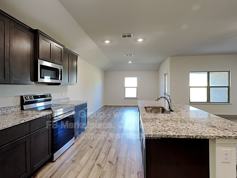 This spacious and inviting single-story home offers 4 bedrooms and 2 full bathrooms in a thoughtfully designed split-bedroom floor plan, providing both comfort and privacy for every member of the household. Nestled in a newly developed neighborhood, this property combines modern style with everyday functionality. The large open-concept living area flows seamlessly into the kitchen, creating an ideal space for entertaining or relaxing with family. The kitchen is well-appointed with a built-in microwave, electric stove, ample cabinetry, and a charming breakfast nook perfect for casual dining. The expansive primary suite serves as a peaceful retreat, featuring a generous walk-in closet, dual sinks, a relaxing garden tub, and a separate shower. Step outside to enjoy a covered patio overlooking the backyard, perfect for outdoor dining or quiet evenings at home. Additional highlights include a full two-car garage, a dedicated laundry area, and an excellent location close to parks, schools, and community amenities offering a wonderful blend of modern living and suburban comfort.