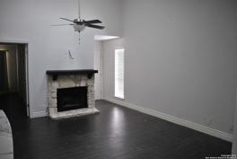 Comfortable 1 bedroom 1 bath end unit on the second floor. Wood burning fireplace in living room with skylights in the tall ceiling. Oversized balcony overlooks the pool area and has additional storage. Bedroom has 2 walk in closets. Pets on case by case basis under 25lbs. Rent includes condominium fees and use of common areas and pool. Close to UTSA, new HEB and LaCantera Mall.