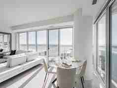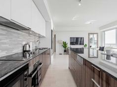 Extras:All Existing Appliances: Built-In Mille Fridge, Stove, Dishwasher, Microwave, White Stacked Washer & Dryer, All Elfs, All Motorized Window Covering , 2 Parking Spots And One Locker,Internet,Cable Tv,Electricity Included In Rent.