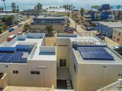Beautiful coastal home located just 1/2 block from the beach and within walking distance to restaurants, shops, and the Imperial Beach Pier. Conveniently situated near public transportation with easy access to Downtown San Diego and Coronado. This 3-bedroom, 2.5-bathroom home features an open-concept floor plan with high ceilings, abundant natural light, and modern finishes throughout. The main level offers a spacious living area that flows seamlessly into the kitchen, complete with a large island, white shaker cabinetry, and stainless steel appliances including gas range/oven, microwave, refrigerator, and dishwasher. A convenient half bath and private patio are located just off the kitchen. Upstairs, all bedrooms feature high ceilings and ceiling fans. The primary suite includes a private deck with ocean views, walk-in closet, and an en-suite bathroom with ample storage. Two additional bedrooms share a dual-access bathroom. A full laundry room with washer and dryer is also located on the upper level. Enjoy a 1,000 sq ft rooftop deck with panoramic ocean views, perfect for entertaining. Additional features include central A/C, solar panels, whole-house water filtration, EV charging, outdoor shower, 2-car garage, and additional off-street parking. Non-smoking. Pet-friendly with approval. Tenant pays utilities; trash and gardening included. Rental insurance required.