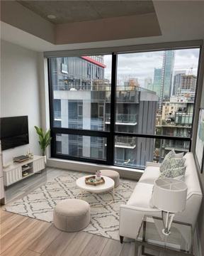 Woodsworth Loft 1 bedroom with 9ft ceilings, floor to ceiling windows, gas cooking in modern kitchen, stainless steel appliances, quartz counters and located across the street from the YMCA and Waterworks Food Market, Ace Hotel on Camden and Park. The best of Queen Street, King Street West, and Chinatown all within a 5 min walk.
