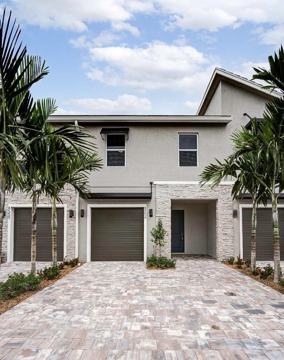 Prime Lake Worth location. Hypoluxo and Lyons-- close to EVERYTHING. This 3 bed, 2.5 bath smart-home townhouse offers low-maintenance living with a modern kitchen featuring white cabinetry, stainless steel appliances, granite counters, walk-in pantry, and upgraded backsplash and half bath. Bright open layout on the main floor with tile throughout; all bedrooms upstairs for privacy. Primary suite includes walk-in closet and double-sink vanity. Full-size laundry on second level. One-car garage plus extended driveway. Ceiling fans, blinds, and ample storage already in place. Walk to Publix, Dunkin, and Bank of America. Minutes to the Turnpike, top hospitals, Wellington amenities, and Palm Beach attractions.