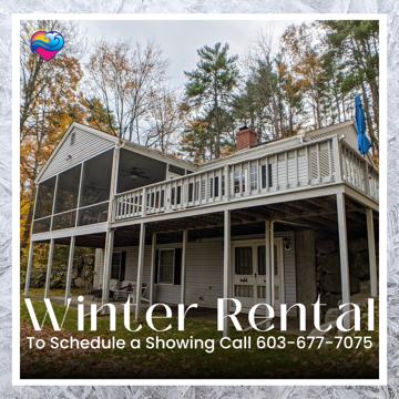 Available Now, this bright and sunny, fully furnished 3-bedroom, 2-bathroom single-family home sits directly on Lake Winnipesaukee.