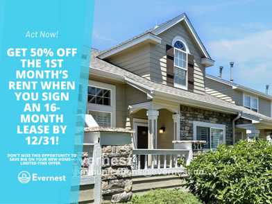 Get 50% off the first month’s rent when you sign an 16-month lease by 12/31! Don't miss this opportunity to save big on your new home—limited-time offer.