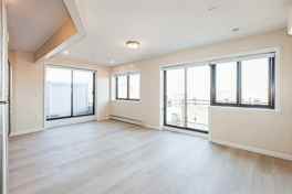 Rare Condo Opportunity. One Bedroom/One Bath Bright & Airy Quiet Top Floor boasting double side balconies. Soak in the view! Open Concept design surrounded by Double Sliding Glass Doors, brings the light flooding into your living space. Updated modern kitchen finished with ceramic backsplash and stainless appliances. Newly installed wall to wall flooring throughout, and full private laundry of your own. High ceilings with modern recessed lighting. Perfectly located for easy commuting to work and school. And, ... only a convenient short walk to subway and shopping. Welcome Home to Garden Hill.