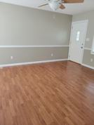 The property's interior features kitchen appliances and a washer/dryer hookup. The master bedroom has an ensuite with a standup shower. Laminate flooring is featured in the living room and hallway, tile in the kitchen and bathrooms, and carpet in all three bedrooms.