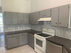 Included appliances are a refrigerator, electric stove/oven, dishwasher, and garbage disposal. The kitchen features a corner walk-in pantry and a newly installed tile backsplash. Please note that washer and dryer hookups are available only, accompanied by a large indoor laundry room equipped with a folding table and ample cabinet space. Lawn service is not included.