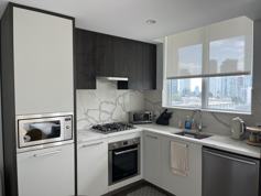 In addition to being fully furnished, it's stocked with all the essentials you need. Kitchen utensils, pots, pans, dinnerware etc. The building has plenty of amenities including a workout gym, ping-pong room, yoga room, and basketball courts (both indoor and outdoor). The space also boasts two balconies with calming views of the mountains and city.