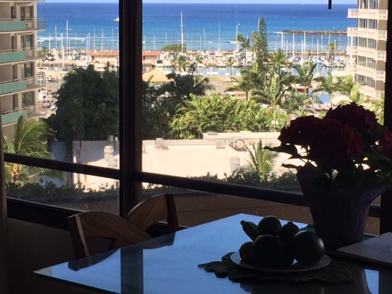 Deluxe ocean view studio at Discovery Bay is fully furnished with quality furniture, and located across the street from the world famous Illikai Hotel. Rent is inclusive of all expenses including Hawaiian Excise Tax. Comes with wood plank flooring, BOSCH stainless steel, Quartz solid counter tops, wide base boards, matching Quartz counter tops in the bath room, covered secured parking, washer and dryer and everything you need to call home, infact the only thing missing is you. Amenities galore. This is the place to be in Waikiki and happens to have the same view as the opening credit to the 1960 TV show Gilligan Island (filmed at about the same height and angle as the view from the windows.