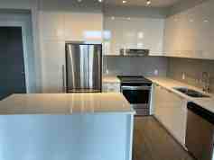 Get inspired in a gourmet kitchen with stainless steel appliances, a spacious island and well-designed kitchen details, including soft-close cabinet hardware and seamless flat-panelled cabinetry highlighted by sleek polished chrome pulls