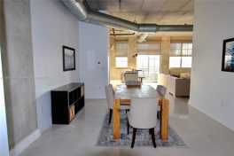 BEST UNIT IN MILL LOFT!!! FURNISHED or UNFURNISHED - Industrial Loft in FAT Village. Oversize impact windows look South to full city skyline, spectacular sunsets & natural light filling your space. Open floor plan,12ft ceilings w/polished concrete floors SS appliances, gas range/oven, dishwasher, refrigerator, washer/dryer in unit. Walk-in closet. Spacious marble bathroom. 5.1 surround sound, screen, Apple Tv. Walkable to Las Olas, multiple cafes.