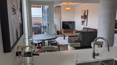 Stunning award winning, large, fully furnishedone bedroom condo in New Edinburgh. Locacted in a wonderful vibrant community in new Edinburgh - Walking distance to cafes, shops, restaurants, pubs, services, cycling and running paths, parks etc. Walk to embassies / downtown. Brand new apartment with top shelf, brand new furnishings / amenities.