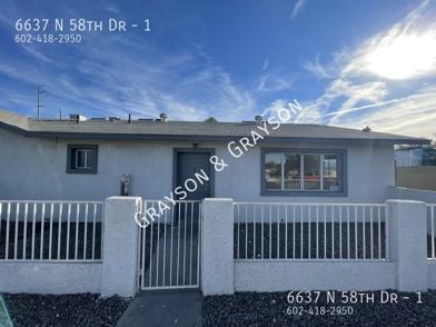 6637 N 58th Dr #1 is a 2 bedroom, 1 bathroom apartment for rent. It is located in Glendale. It has apartment amenities including air conditioning, and assigned parking. Cats and dogs are allowed, making it a pet-friendly apartment.
