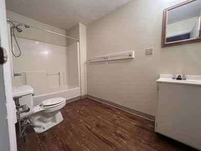 409 B Forest – Three bedroom one bathroom second and third floor apartment with an open floor plan living room, dining room and kitchen with a dishwasher, stove, refrigerator, and washer/dryer. There is new vinyl plank flooring in the kitchen, living room, hallway and bathroom, and carpet in the bedrooms. There is a nice deck large enough for a table and some chairs. There is some free street parking in front of the house. Unit has off-street parking available for a fee.