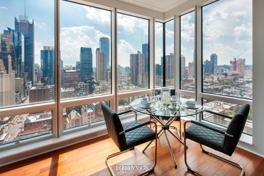 Rising 43 stories above Hell's Kitchen, icon defines the skyline with its striking architecture and avant-garde design. Each floor is private to only three residences, all of which are positioned on the building's corners to take advantage of endless views through curtains of glass. Dramatic scenes of the Hudson River, Central Park and the surrounding city unfold at every angle and are enhanced by cascading terraces on nearly two thirds of the residences. Residences are well appointed with nine foot ceilings and features solid Brazilian cherry wood flooring, digital temperature control solar shades, customizable Elfa closet systems and Bosch washer & dryer.