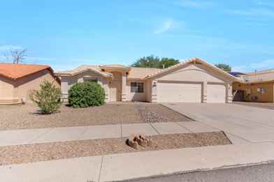 A wonderful remodeled 4 br. home in Rita Ranch. Spacious Living & dining rooms with vaulted ceilings. Two large living areas with corner fireplace in family room. Upgrades include new flooring throughout, cabinets and countertops, ceiling fans, & fixtures in living room, family room & all bedrooms, gas stove, split bedroom plan, 3 car garage & new paint. A covered patio with large yard with an enclosed cat/ small dog yard.