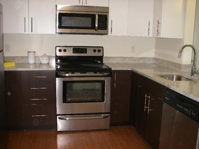 Upscale unit with gourmet kitchen featuring granite, stainless and pendant lighting. Central air, bamboo look flooring, tiled bath, good size closets, elevators and garage parking available.